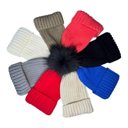 Πλεχτό Γυναικείο Σκουφάκι με Αποσπώμενο Πομ Πομ από Φυσική Γούνα Αλεπούς | Μαύρο POM POM SKU : 007-020