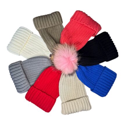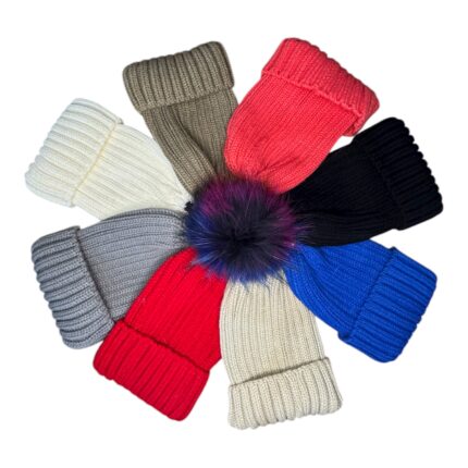 Πλεχτό Γυναικείο Σκουφάκι με Αποσπώμενο Πομ Πομ από Φυσική Γούνα Αλεπούς | Multicolor POM POM SKU : 007-030