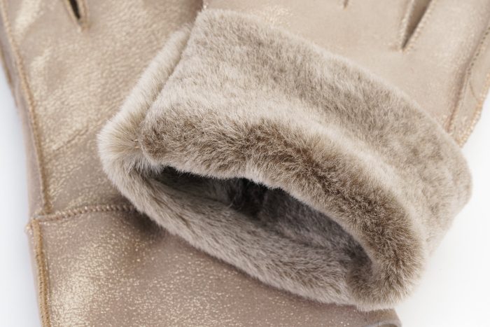 Γυναικείο Δερμάτινο Γάντι Μουτόν Με Εσωτερική Επένδυση Φυσικής Γούνας ΚΩΔ.101-10 Χρυσό Glitter
