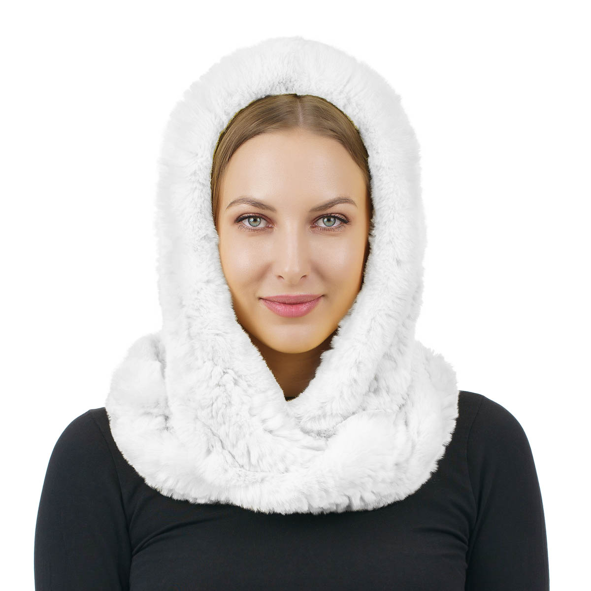 Κουκούλα με Ενσωματωμένο Κασκόλ από Φυσική Γούνα Rex ΚΩΔ : 006-010 Άσπρη