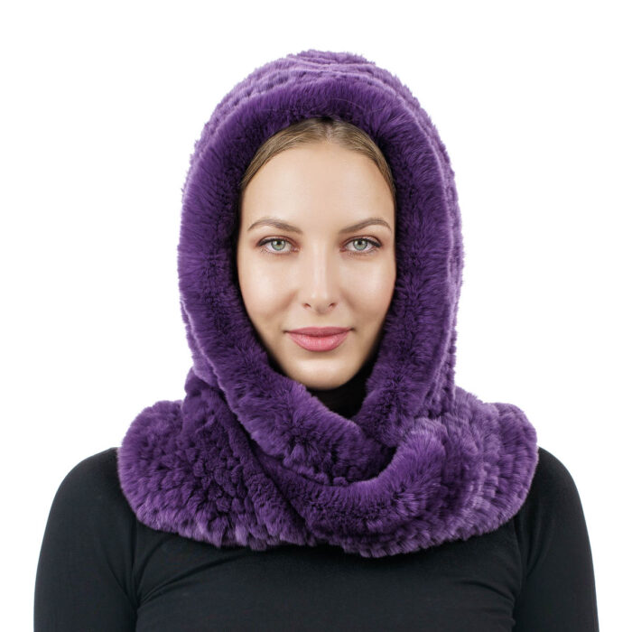 Κουκούλα με Ενσωματωμένο Κασκόλ από Φυσική Γούνα Rex ΚΩΔ : 006-008 Μωβ