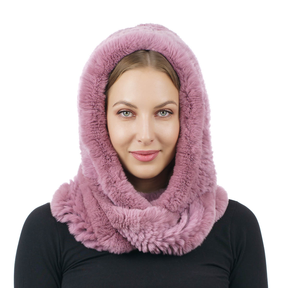 Κουκούλα με Ενσωματωμένο Κασκόλ από Φυσική Γούνα Rex ΚΩΔ : 006-009 Ροζ