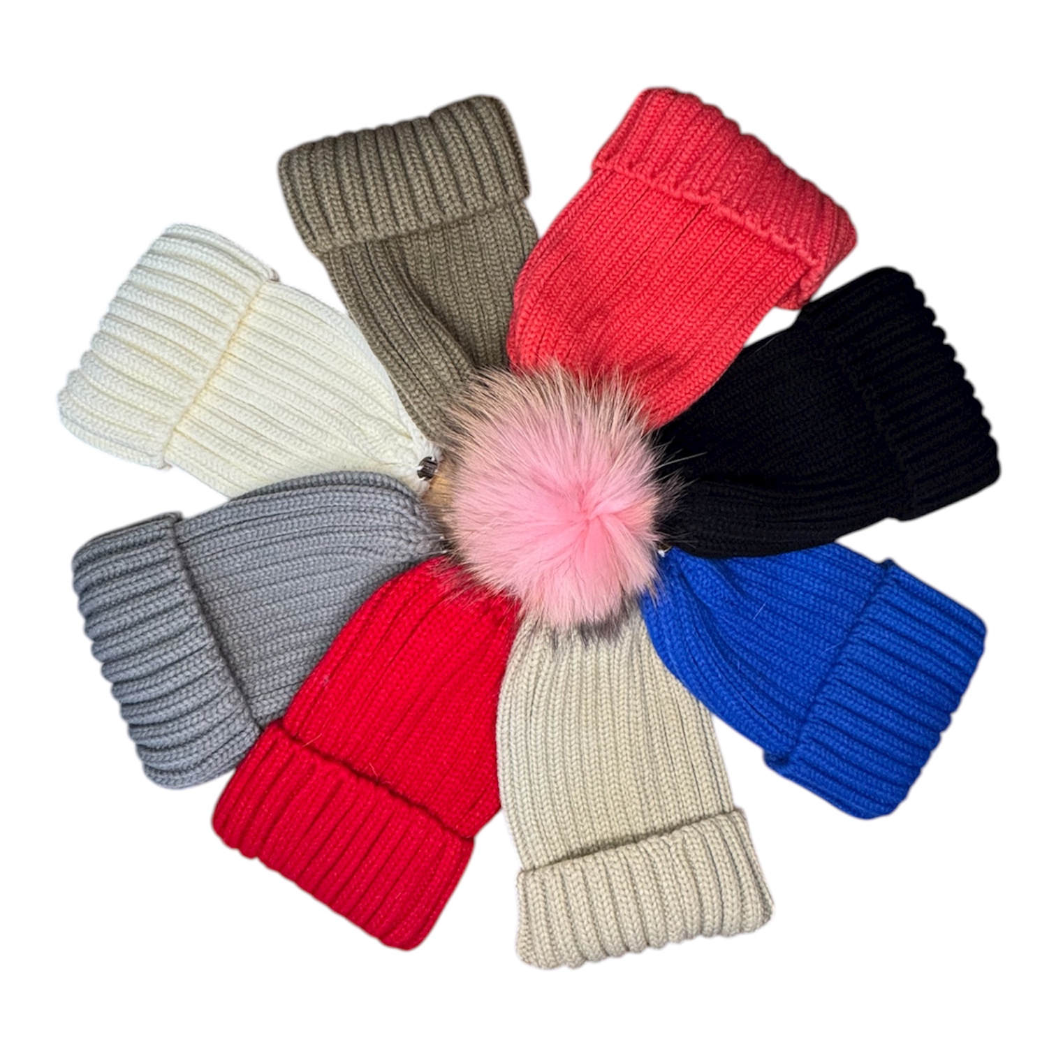 Πλεχτό Γυναικείο Σκουφάκι με Αποσπώμενο Πομ Πομ από Φυσική Γούνα Αλεπούς | Ροζ POM POM SKU : 007-040