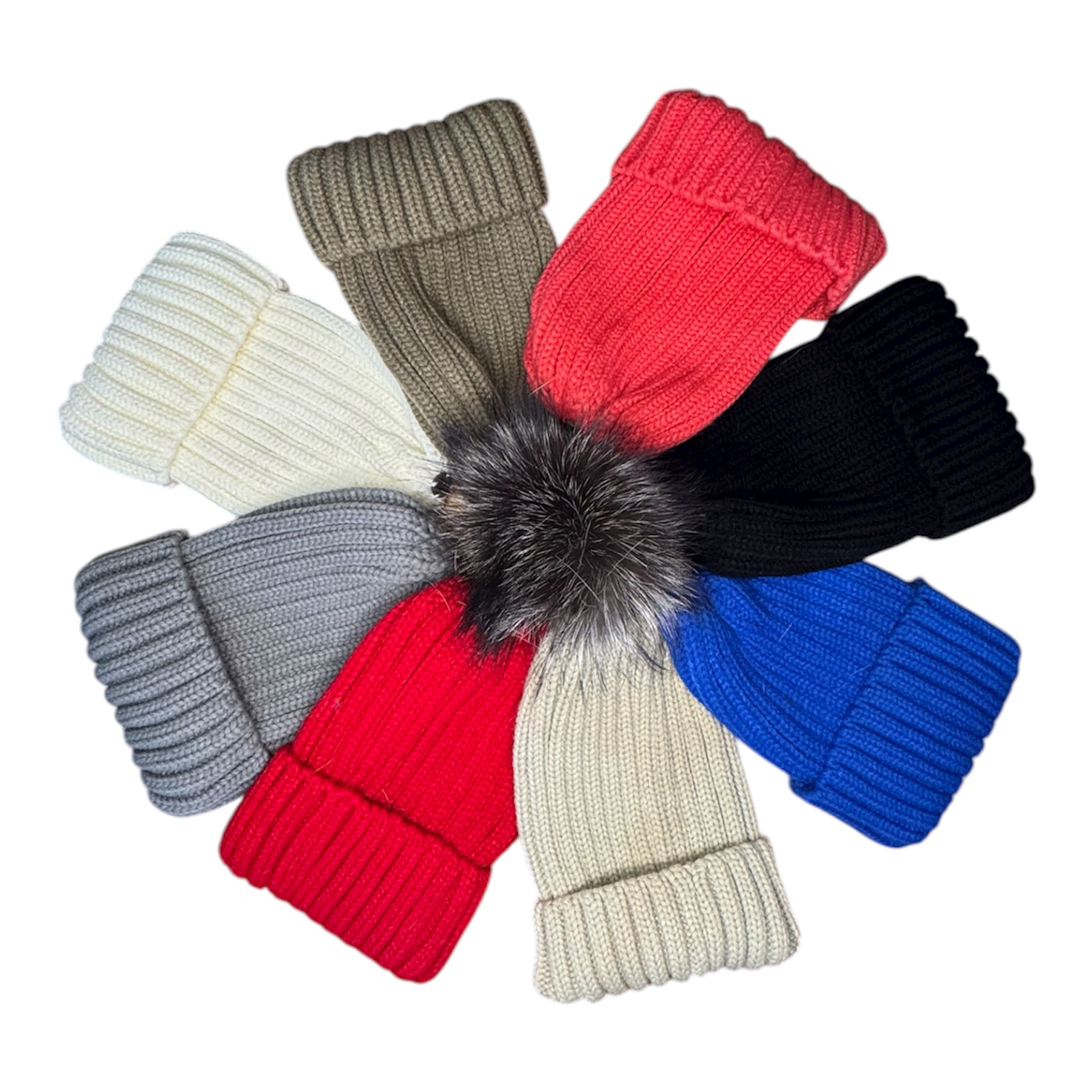 Πλεχτό Γυναικείο Σκουφάκι με Αποσπώμενο Πομ Πομ από Φυσική Γούνα Αλεπούς