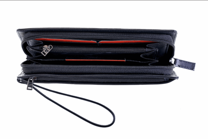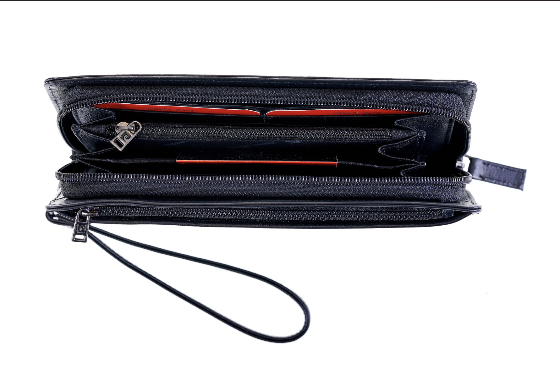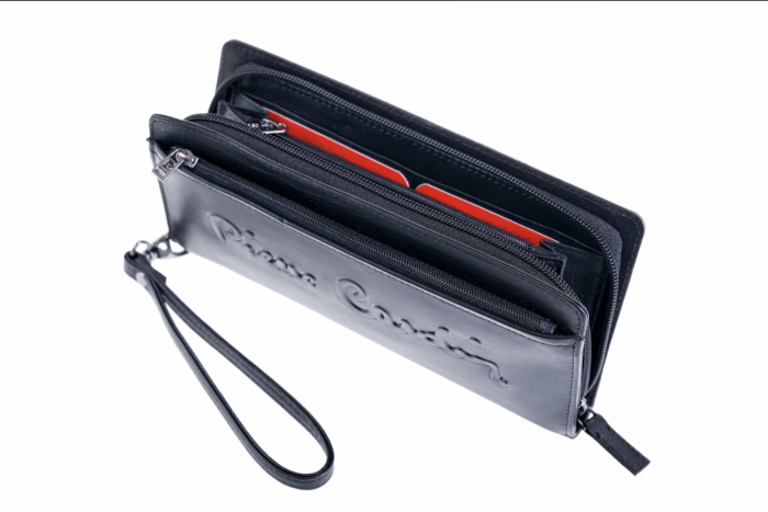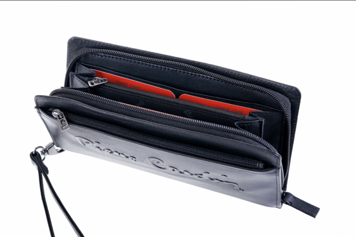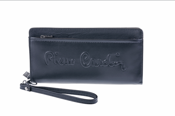 Pierre Cardin Γυναικείο Δερμάτινο Πορτοφόλι Χειρός Μαύρο με Λουράκι & Φερμουάρ – Γνήσιο Δέρμα
