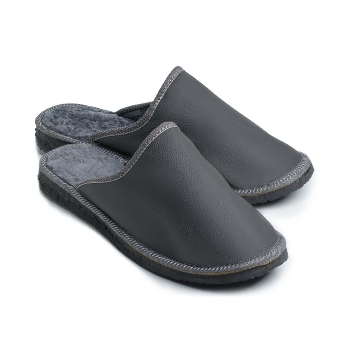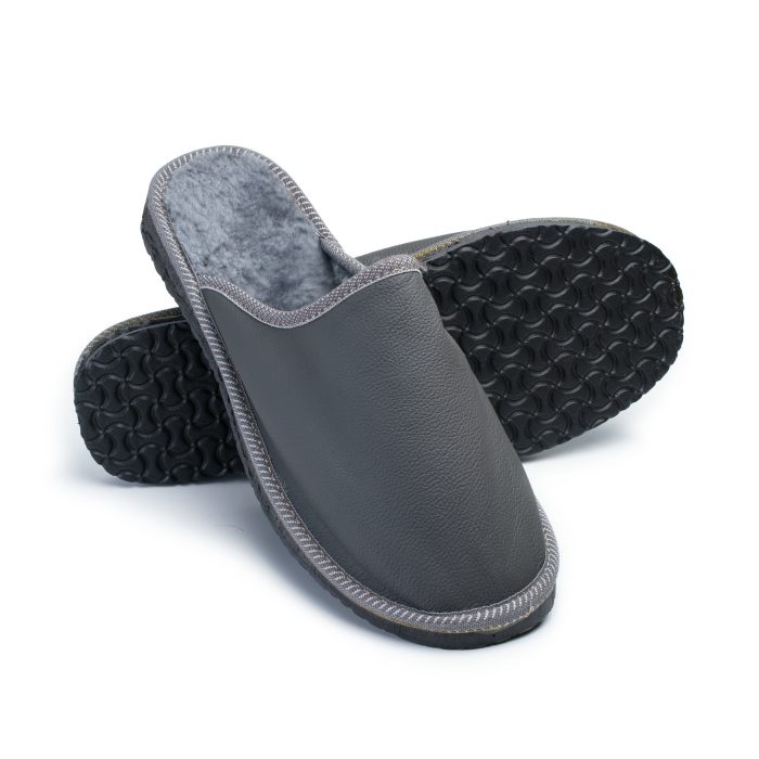 Χειμερινή Ανδρική Γούνινη Παντόφλα Καστοριάς | Δερμάτινη Με Επένδυση Φυσικής Γούνας Μουτόν | Πολύ Μαλακό Δέρμα NAPPA ΚΩΔ.100-53 Γκρι